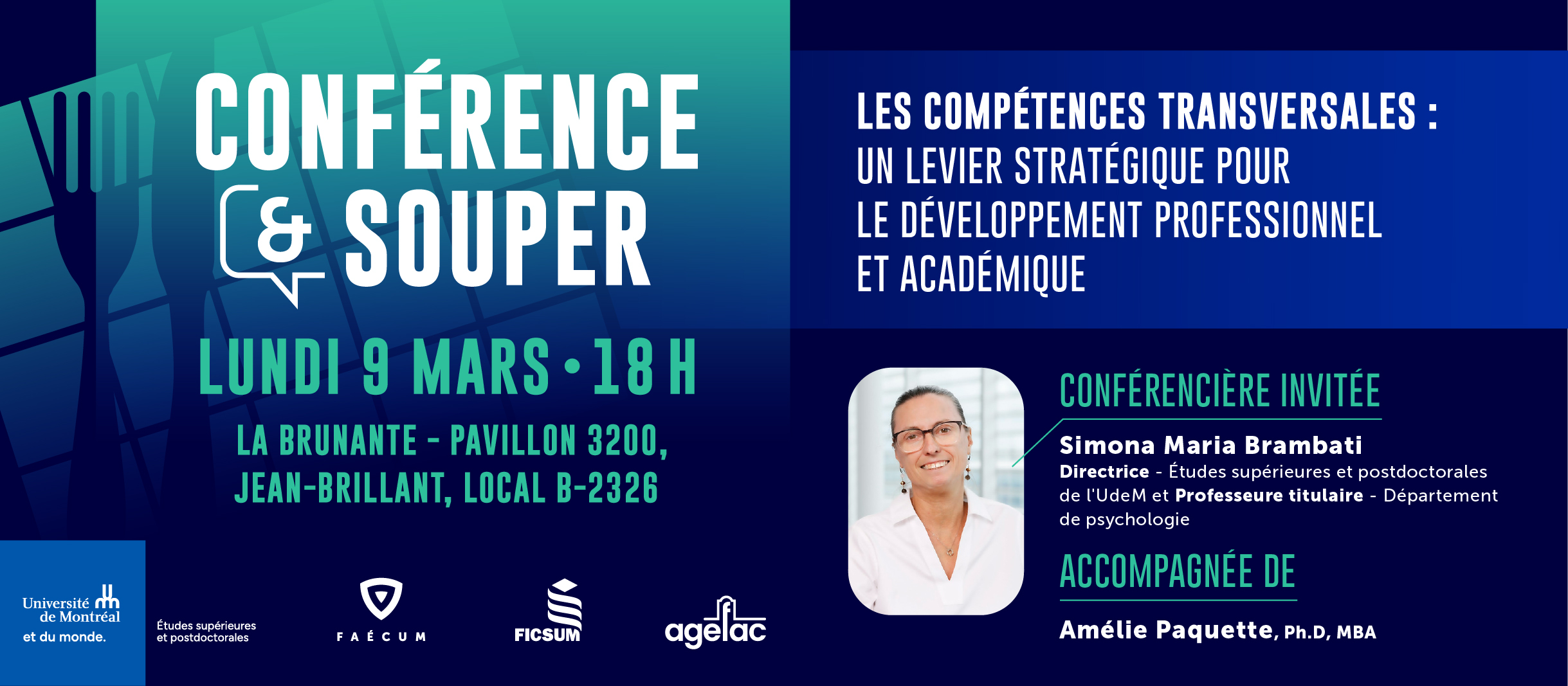 « Conférence et Souper » est un événement organisé deux fois par année et destiné aux personnes étudiantes aux cycles supérieurs de l’Université de Montréal.